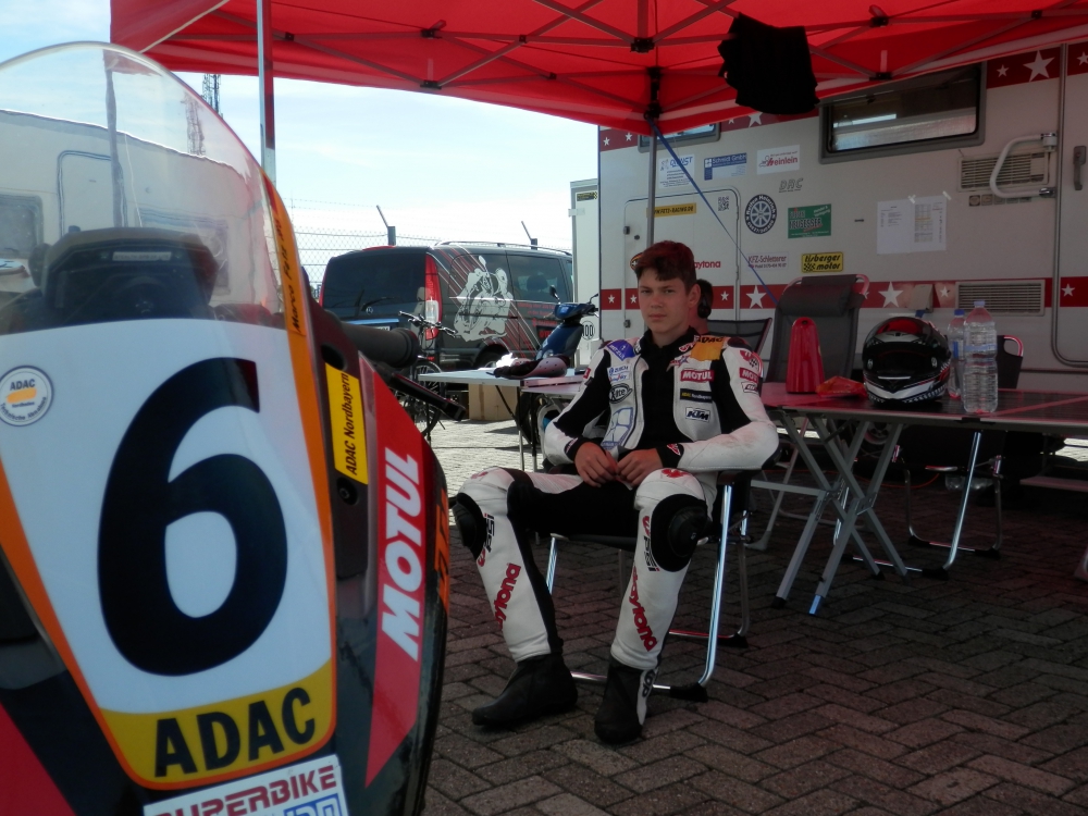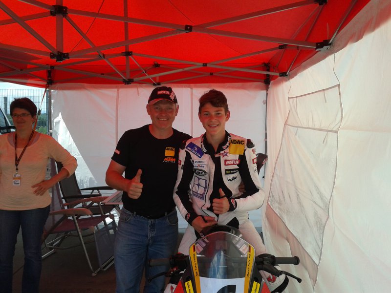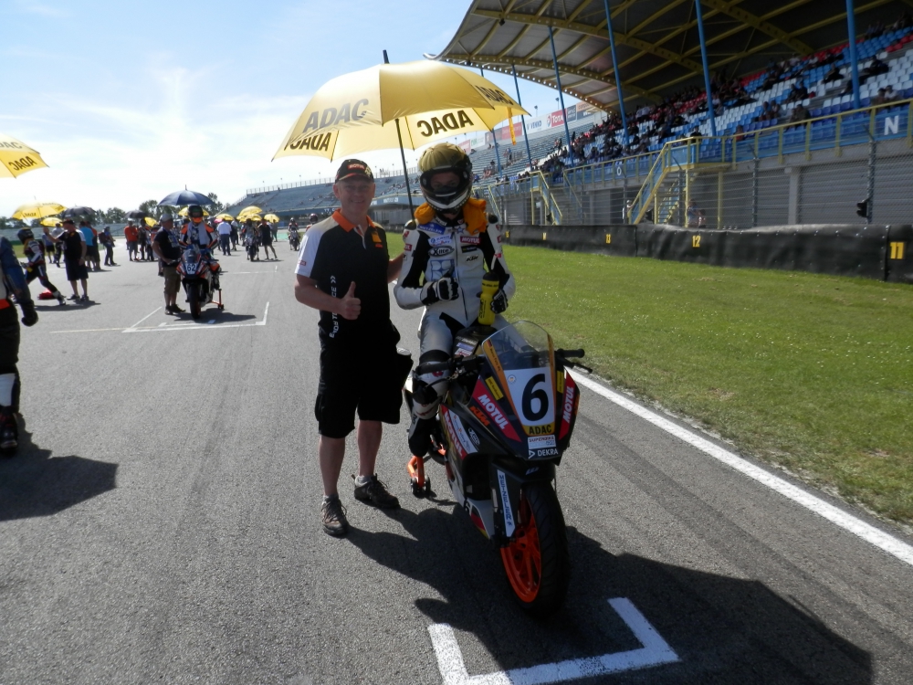Samstag-Nachmittag um 14:50 Uhr ging zum ersten Rennen die Ampel aus! „Ich hatte dort einen guten Start und konnte gleich an der Führungsgruppe, welche von Position 1-18 ging, dran bleiben“.