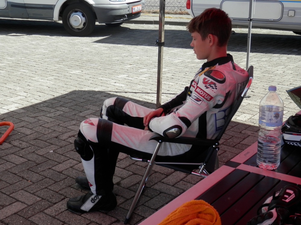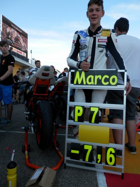 Marco fuhr hinter Sohnius und beide konnten den Anschluss ab 3 Runden vor Schluss nicht ganz halten und fuhren ihr eigenes Rennen. Mit einem Rückstand von 3,557 sec. zur Spitzengruppe und einem Abstand von 0,035sec. hinter Sohnius beendete er als 18ter (WM16) das erste Rennen.