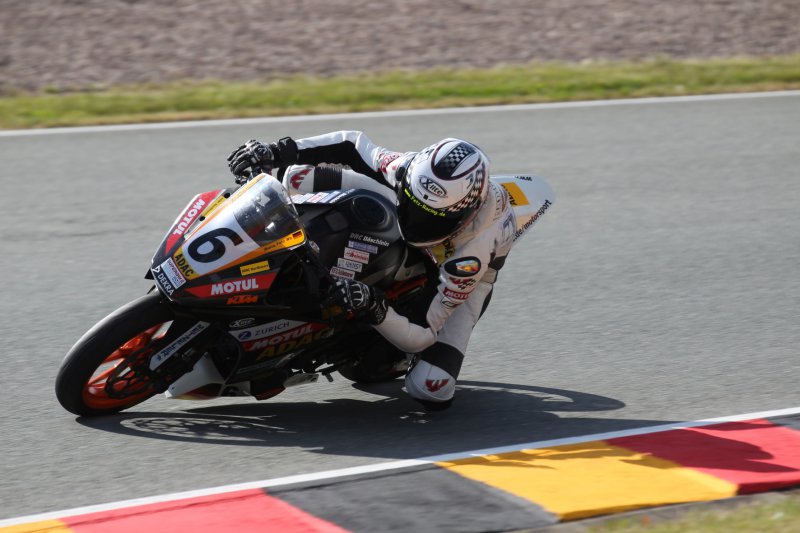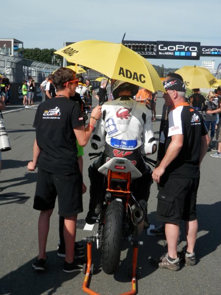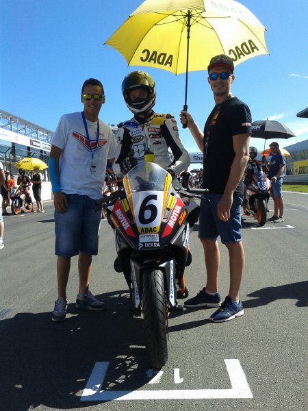 Freitagmorgen war dann noch etwas stressig, wir mussten das Motorrad vorbereiten und alle Abnahmen und Anmeldungen erledigen bevor es um 12:55 Uhr zum ersten freien Training auf die Strecke ging. Bereits nach den ersten Metern bekam Marco ein Grinsen unterm Helm: „Schon nach ein paar Runden stellte ich fest, dass es eine richtig geile Rennstrecke ist und es wahnsinnig Laune macht hier zu fahren“. Im ersten Freien landete er auf P15 (WM P12).