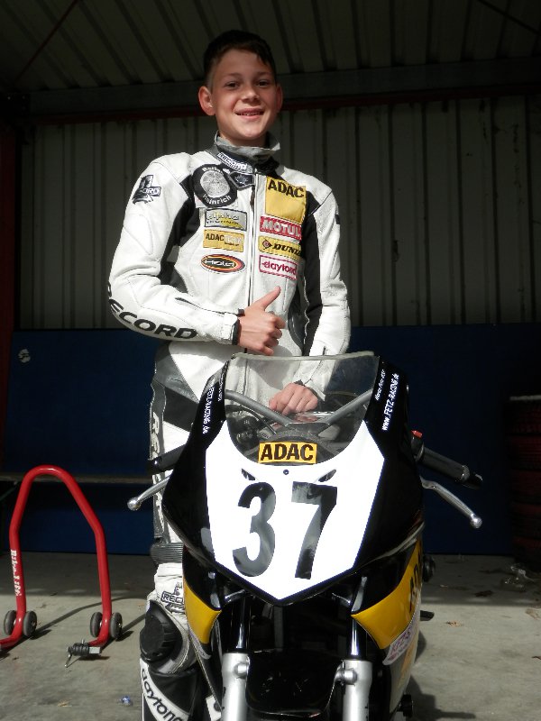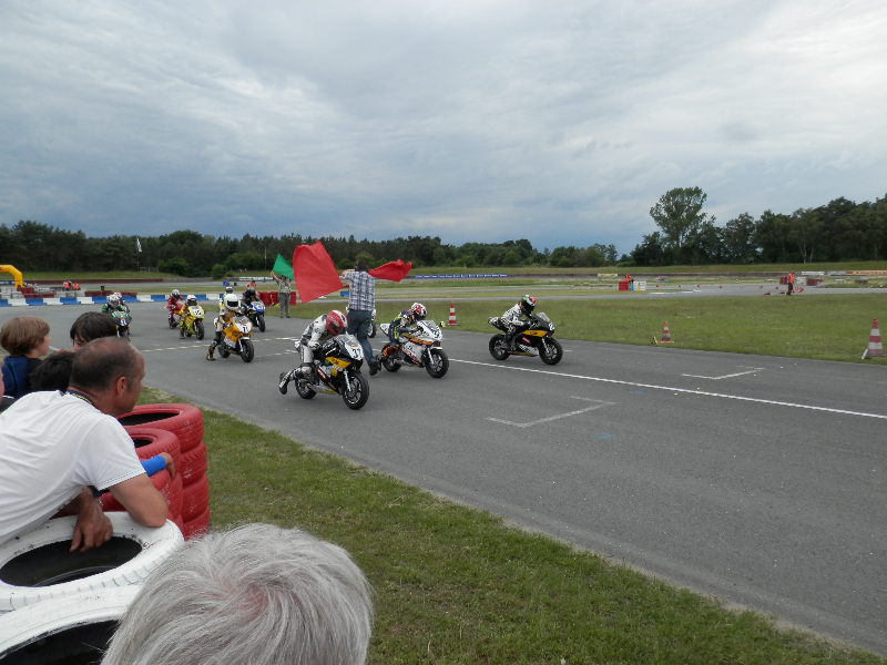 Beim ersten Rennen (A-Finale Einsteiger, 18 Runden) hatte Marco einen guten Start und fuhr auf P4 vor. Noch in der ersten Runde wurde er von Tabellenführer Vostatek überholt, der von P8 startete. Im weiteren Verlauf des Rennens konnte Marco der 4er Spitzengruppe folgen und hatte im Ziel nur 0,863 sec. Rückstand auf den 4. Platz und 7 sec. Vorsprung auf den 6. Platz!