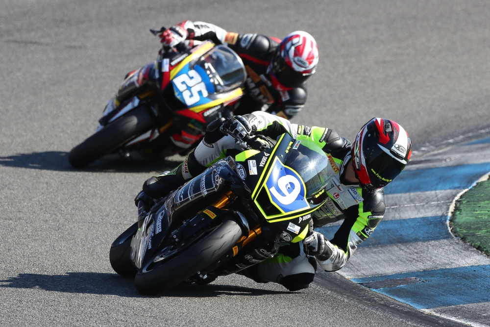 Er kam ganz gut weg, hatte aber leider nach 3 Runden einen Highsider bei dem er sich leicht am Fuß verletzte. Dank der Daytona Stiefel ist es glücklicherweise nur zu einer Prellung gekommen!