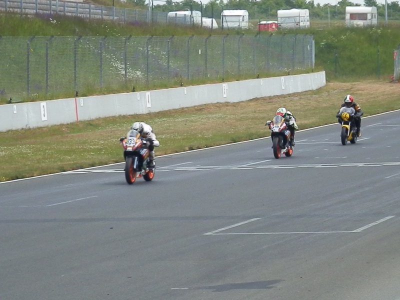 In der letzten Runde hat sich Marco in der Schikane vor Start-Ziel an Jähnig vorbeigebremst und fuhr auf die Tausendstel Sekunde gleich mit ihm über den Zielstrich! Da dessen Transponder an anderer Stelle montiert war kam es zum Fotofinish, in dem man deutlich Marco‘s Vorsprung von ca. 30cm erkennen kann !!