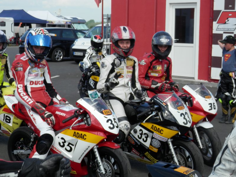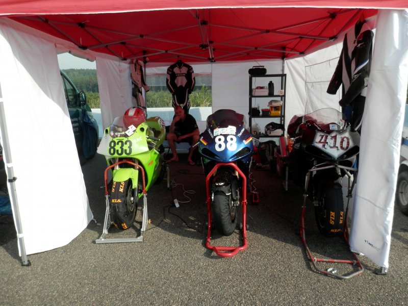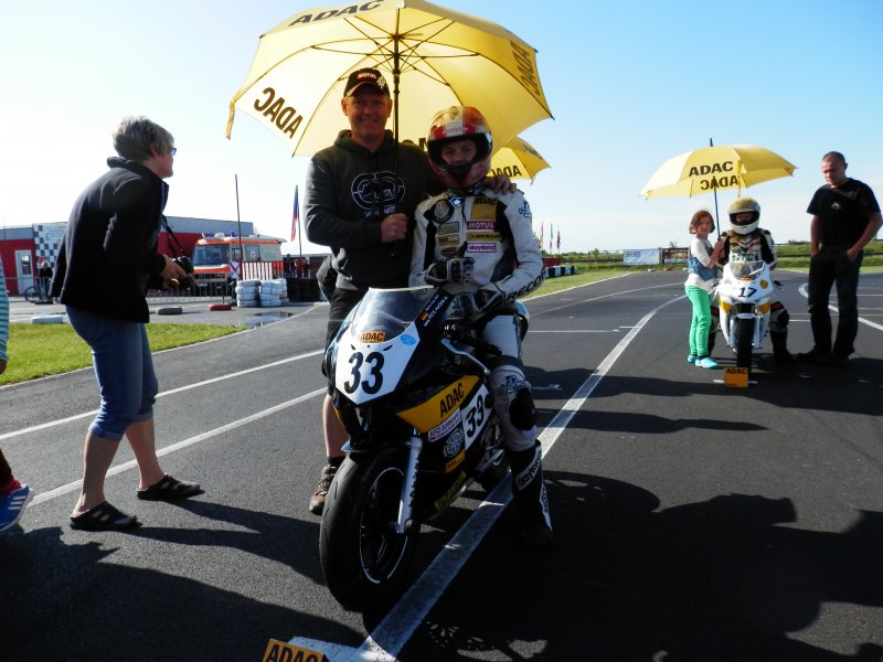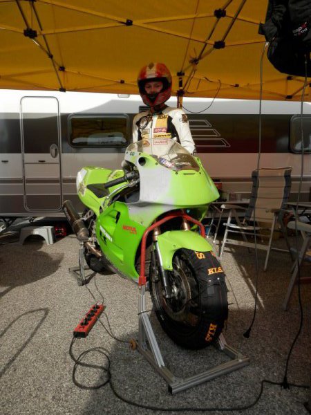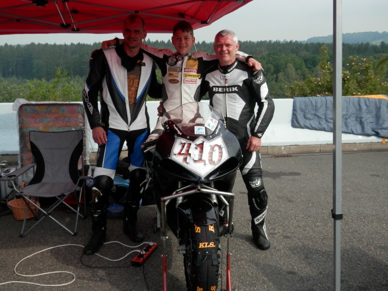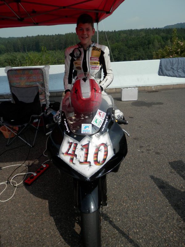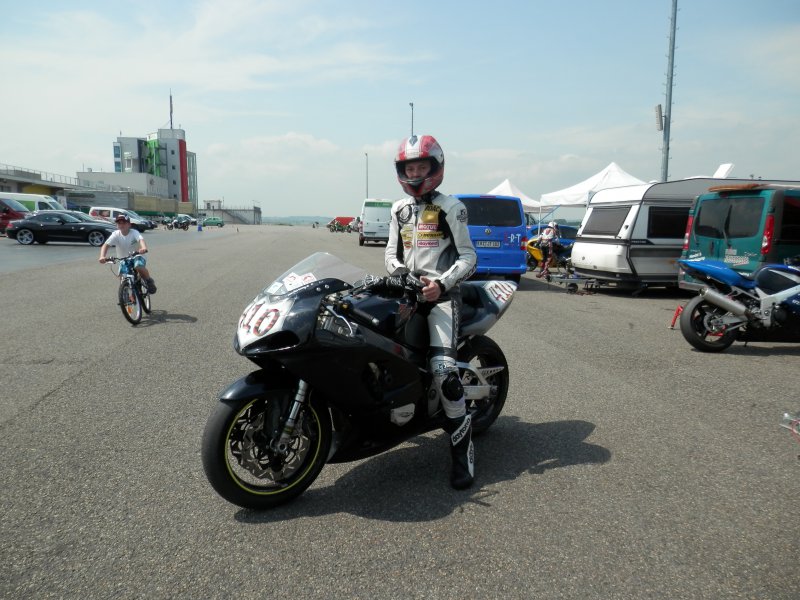 Am vergangenen Dienstag und Mittwoch, 10.+11.06.14, waren wir am Sachsenring und haben dort eineinhalb Tage lang trainiert. Am Dienstag fuhr ich mit meiner Kawasaki ZXR400 eine niedrige 1:42er Zeit, worauf ich sehr stolz bin. Danach stand das Rennen an, doch davor noch ein 10-Minütiges Warm Up. Als das Warm Up vorbei war, stellten wir fest, dass die Kawa Öl verliert, dadurch konnte ich leider nicht am Rennen teilnehmen. Mittwoch vormittag durfte ich dann das erste mal mit der Suzuki GSXR750 von meinem Vater fahren, da die Kawa nicht mehr einsatzfähig war. Es war eine riesen Umstellung, hat mir aber sehr viel Spass gemacht und ich konnte wiedermal viel dazu lernen und kam zeitenmäßig auf eine 1:41,9. Am nächsten Wochenende, den 21.06.14 geht es dann in der Mini Bike Saison zu Gast in Oschersleben bei der IDM wieder weiter.