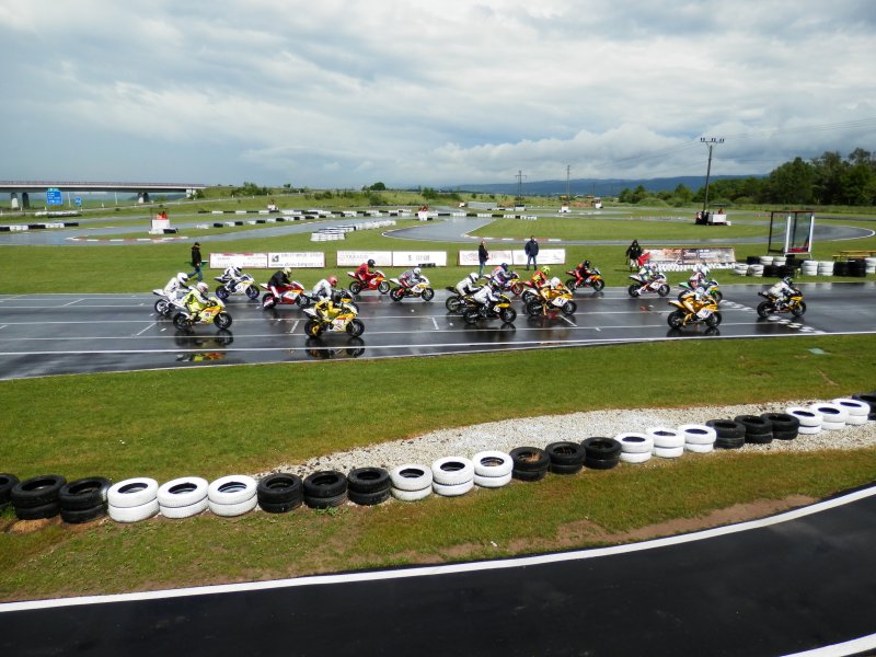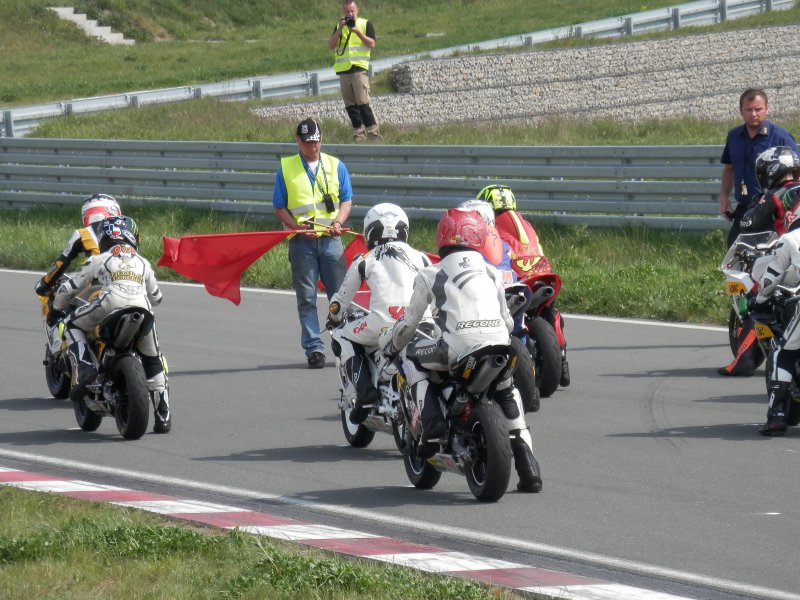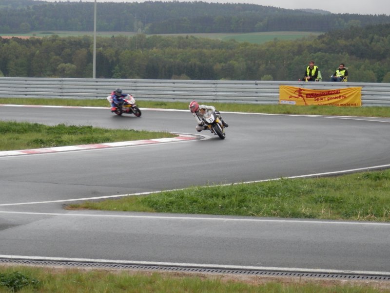Es regnete noch immer als der erste Lauf startete (Nachwuchsklasse, 14 Runden)Marco kam super weg und konnte bis auf den 7. Platz vorfahrenEr wurde etwa in der 2.Runde noch von Graichen überholt, lag auf der 8. Pos., rutschte durch einen Ausfall wieder kurz auf den 7. Platz, wurde aber noch von Cosic überholt. Im Ziel hatte er P8 und war aufgrund der starken  Konkurrenz voll damit zufrieden. Das letzte Regenrennen fand in der Saison 2012 statt, denn 2013 war es bei allen Veranstaltungen trocken.