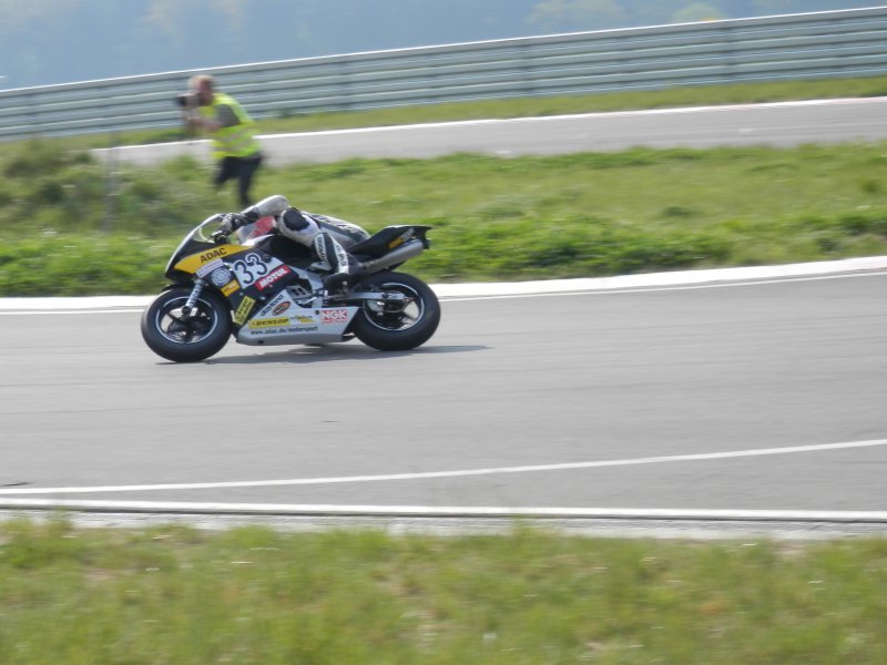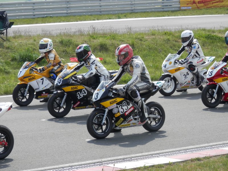 Die 3. Veranstaltung des ADAC Mini Bike Cup fand am vergangenen Wochenende im Rahmen der IDM Superbike in Oschersleben statt. Samstag früh begann der Renntag mit einem freien Training, danach zwei Qualifings. „Im ersten Quali bin ich mit einer Zeit von 39.268 Sekunden auf den 13. Platz gefahren. Da es im zweiten Quali leicht nieselte konnte ich, sowie die anderen aus meiner Gruppe, meine Zeit nicht mehr verbessern und somit startete ich von der 13. Position.