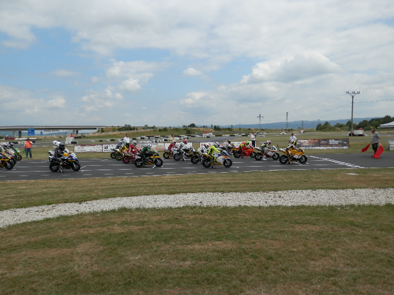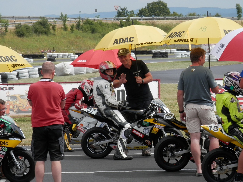 Das komplette Wochenende hatten wir strahlend blauem Himmel und Temperaturen von über 25°C. Am Samstag startete die Veranstaltung mit 1 freien Training. Gefolgt von 2 Zeittrainings bei denen Marco im ersten mit einer 0:56,284 auf dem 8. Platz lag. Im zweiten konnte er sich noch auf 0:55,696 verbessern und stand damit auf dem 7. Startplatz in Startreihe 2. Die Pole hatte Bauer mit einer 0:54,122.