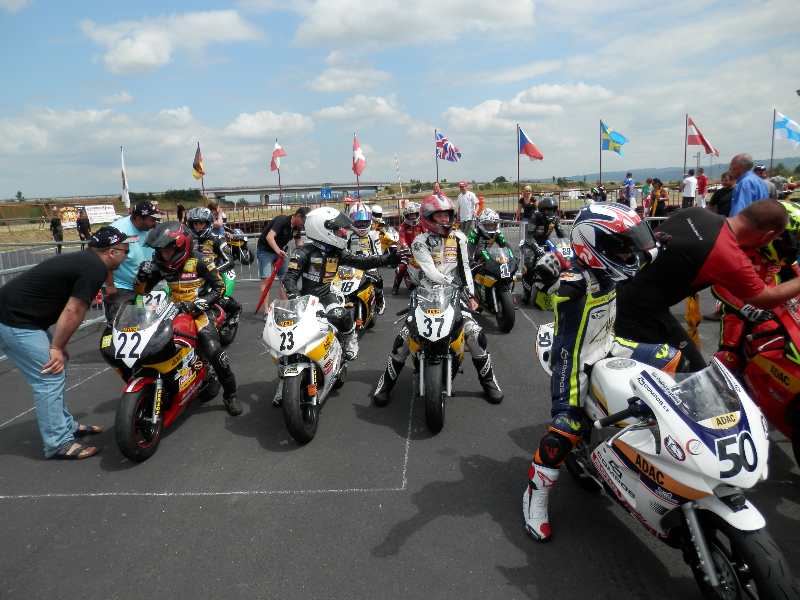 am letzten Freitag gings erneut in den hohen Norden. Die 3. Rennveranstaltung des ADAC Mini Bike Cups in Oschersleben stand auf unserer Tagesordnung. Diese wurde im Rahmen der IDM (Internationale Deutsche Motorradmeisterschaft) am Samstag ausgetragen. Marco konnte am Freitagnachmittag auf der Kartstrecke (767m) der Motorsportarena Oschersleben mit vielen anderen Fahrern an einem freien Training teilnehmen.