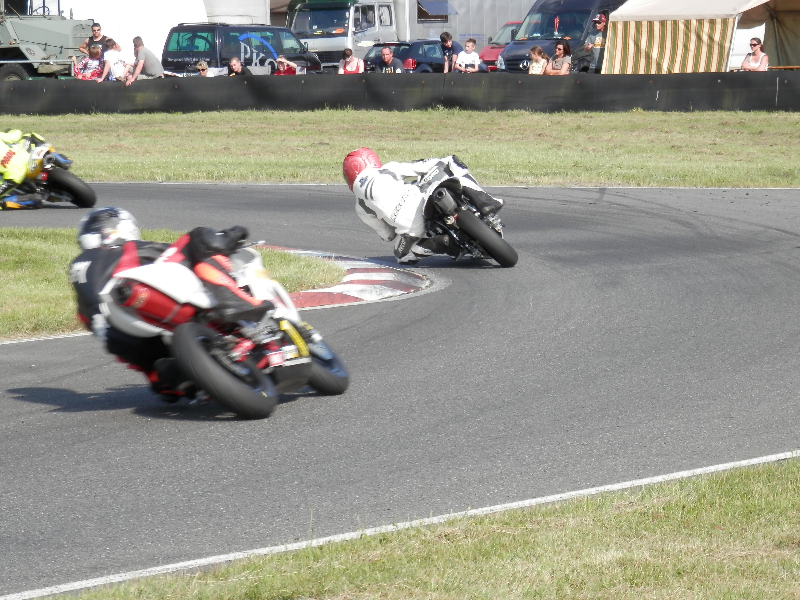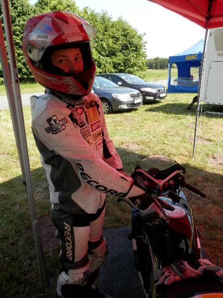 Bei der 2-Tages Veranstaltung fand am sonnigen Samstagmorgen ein freies Training statt, bei dem Marco sich wieder an die Strecke gewöhnen konnte. Gefolgt vom 1. Zeittraing in dem er mit einer 0:47,937 den 2. Platz herausfuhr. Nachmittags im 2. Zeittraining waren die Bedingungen ebenfalls perfekt, allerdings hat er seine Zeit vom Vormittag nicht unterbieten können. Auch die anderen Fahrer kamen nicht an seine Zeit heran, allerdings lagen Starter der Plätze 2 bis 13 innerhalb von 1,5 Sec.! Die Polezeit mit 0:47,354 hatte Vostatek (CZ), dem kein anderer Fahrer das Wasser reichen konnte. Marco war mit Startplatz 2 natürlich voll zufrieden 🙂