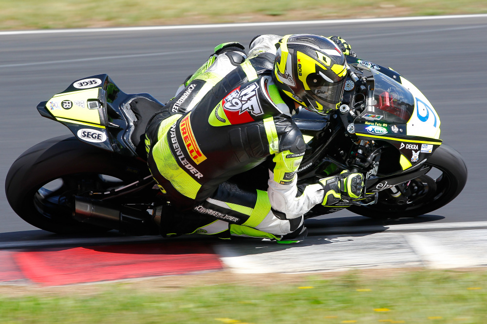 Im zweiten freien Training hatte Marco einen kleinen Ausrutscher, als ihm in der Schikane Ende Start/Ziel das Vorderrad eingeklappt ist. Er hat sich nicht verletzt und das Bike wurde wieder auf Vordermann gebracht.